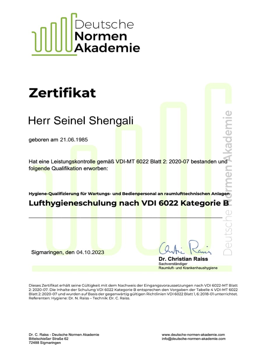 Unser Team setzt sich aus erfahrenen und engagierten Fachkräften zusammen, die durch ihr tiefgehendes Fachwissen und ihre hohe Professionalität überzeugen. Wir sind stolz darauf, eine Vielzahl von Zertifikaten zu besitzen, die unsere hohen Qualitäts- und Sicherheitsstandards bestätigen.